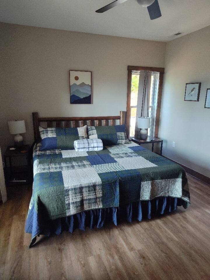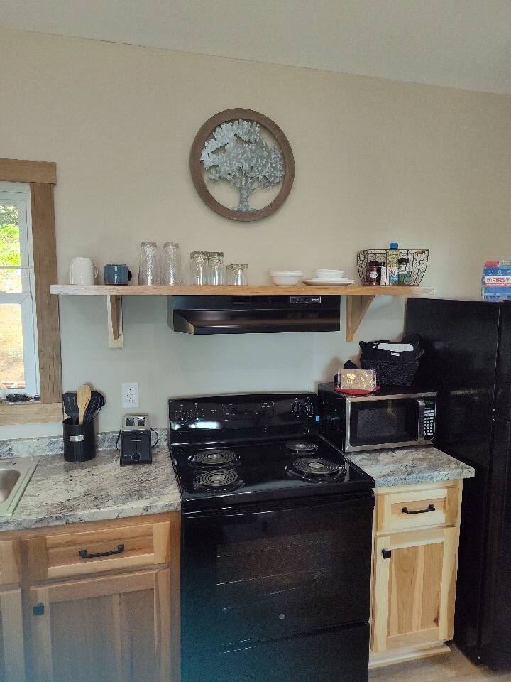 Stunning views overlooking the Shenandoah Valley and walking distance to a waterfall in the Shenandoah National Park. This cabin is brand new (2025), small - but with all the amenities, like a covered deck, full kitchen, king-sized bed, stunning view, wood stove and a very effective heating and AC system (the wood stove nice touch, but not needed), and, of course, a hot tub. Enjoy the peace of the mountainside!