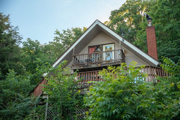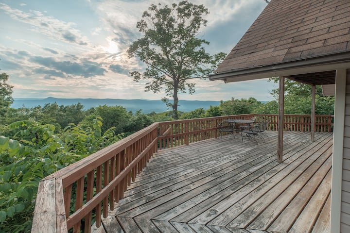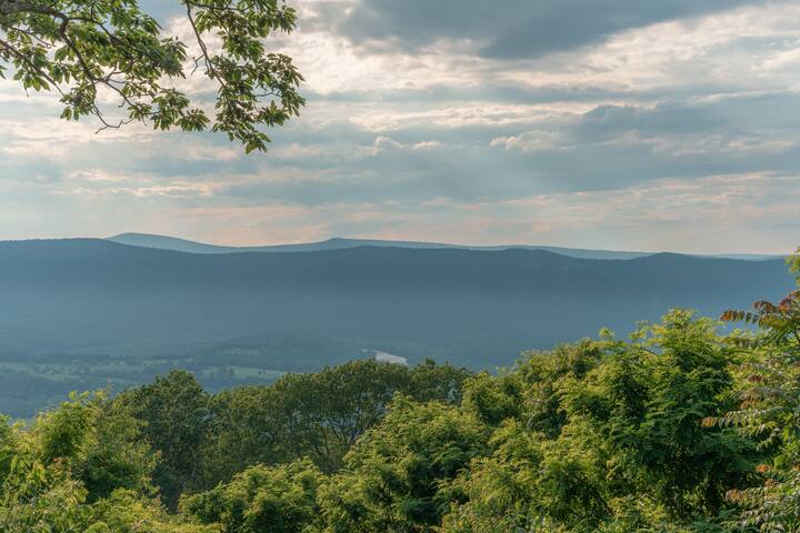 STUNNING panoramic views of the Shenandoah Valley from a large deck, with hot tub AND wood fireplace. All of the amenities. Privacy. PLUS hiking in the Shenandoah National Park is literally steps from the back door. A waterfall with natural pools is less than a 15 minute hike from the house! Wildlife is commonly seen. And at an elevation of 2,000 feet, even summer is comfortable. Skyline Drive and Luray caverns are close by, and Washington DC is only 90 miles away. Also nearby is the Shendandoah River - one of the most beautiful aspects of the area. Lots of opportunity for fishing, canoeing, kayaking, and floating the river. Luray is less than 10 miles away and Front Royal is also nearby, so restaurants, quaint shopping and wineries are all nearby. This is a must see experience!