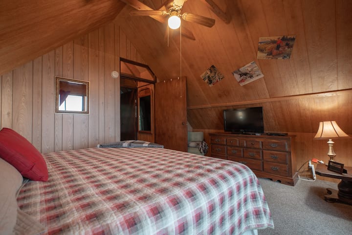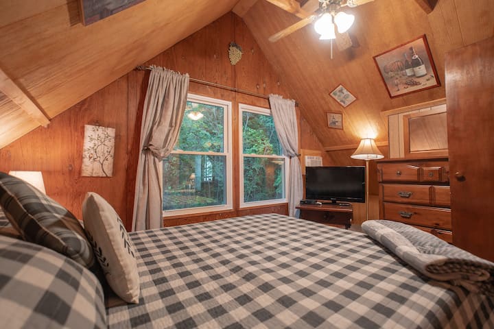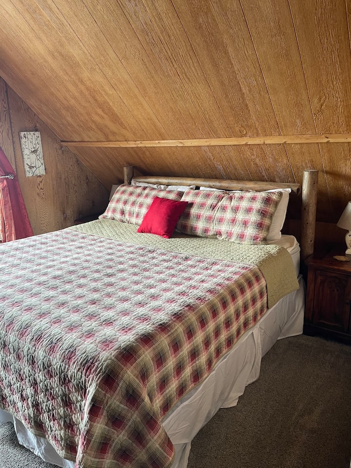 Wake up to nature's serenade in our secluded cabin, complete with a king-size bed.